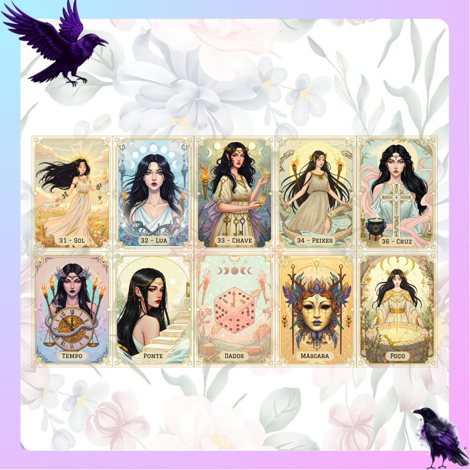 Esse baralho foi canalizado, criado e ilustrado por mim. As energias das cartas trazem uma atmosfera que remetem ao jardim de Hekate e aos mistérios de Medéia.