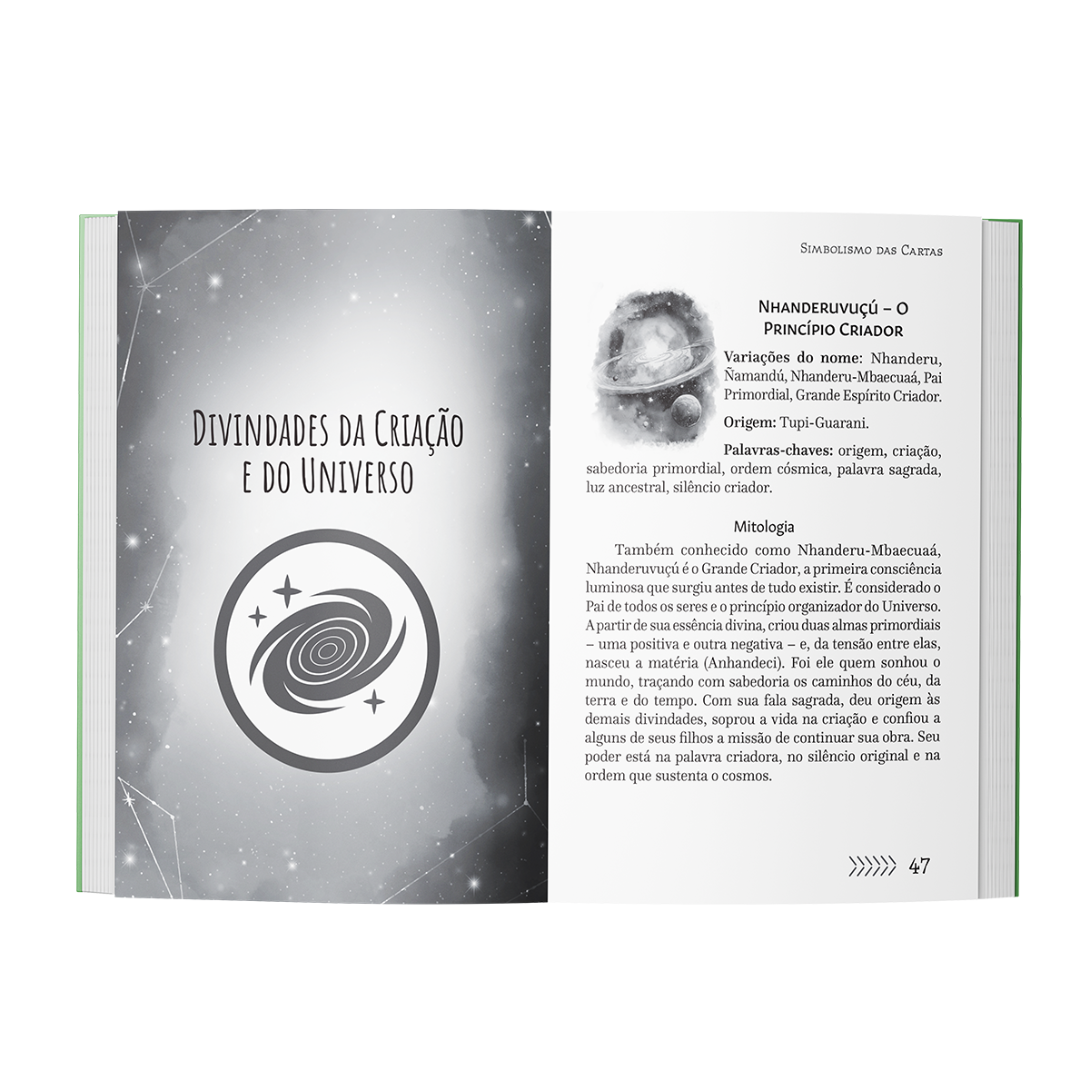 São 52 cartas inspiradas nas vivências cotidianas, sendo a terra o tema central, pois dela extraímos toda nossa existência. Acompanha livreto com várias tiragens e ainda com a lenda de cada uma das 52 entidades, fruto de uma extensa pesquisa da mitologia que envolve nossas mais profundas raízes. Consultar estas cartas é estabelecer contato com o saber primordial, aquele que persiste na memória da terra e se expressa na ação direta. As Deidades deste oráculo comunicam-se por metáforas que se manifestam no mundo, refletindo a verdade das origens e a força inabalável dos ciclos naturais.